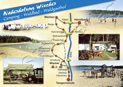 Ansichtskarte "Naherholung Wischer" (Tangermünde-Werben/Havelberg), Weltkartenformat (148 mm x 105 mm), UV-Lack hochglanz, Motivkarte mit 6 Teilbildern