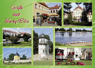 Ansichtskarte "Barby/Elbe" , Weltkartenformat (148 mm x 105 mm), UV-Lack hochglanz, Motivkarte mit 7 Teilbildern